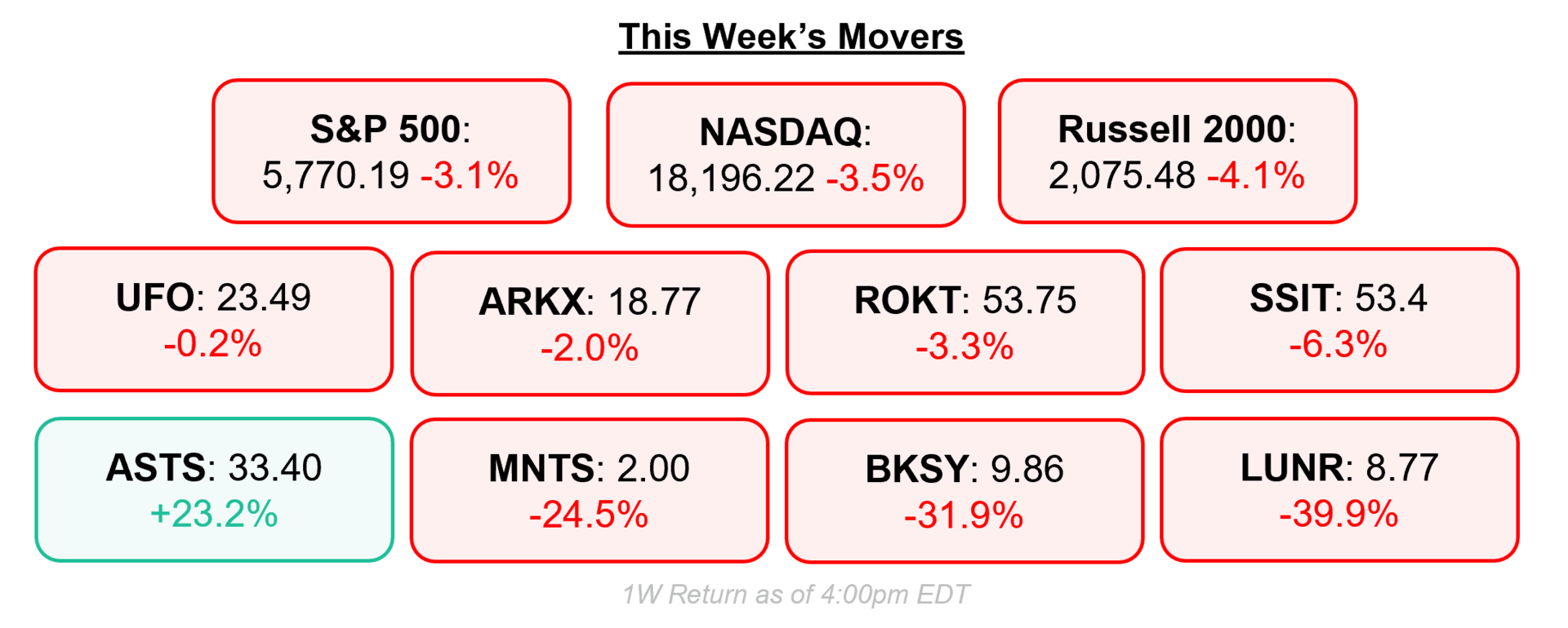 Happy Friday! What a week for space and markets. We're sure your heads are spinning as much as ours. Lets get right down to it.