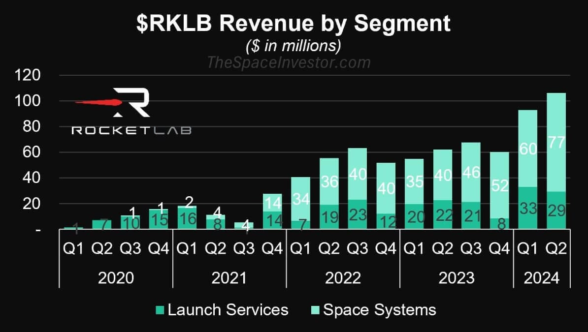 Rocket Lab Revenue Breakdown: In Q2 of 2020, launch services accounted for 100% of revenue. In Q2 of 2024, launch services only accounted for 27% while space systems now makes up 73% of total revenues. How the times have changed.