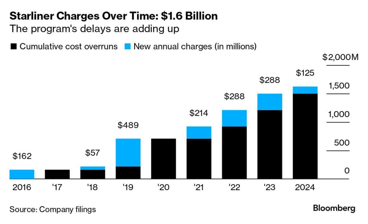 From an 8-day trip to two months to.. 2025? While Butch and Sunita remain stuck, Boeing's ($BA) woes continue on this year -- adding up all the charges reported related to Starliner since 2016 now totals more than $1.6 BILLION in losses.. Not great.