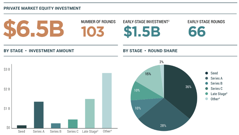 Late stage companies accounted for $4.3B, or ~66%, and investment rounds in this category remain elevated.